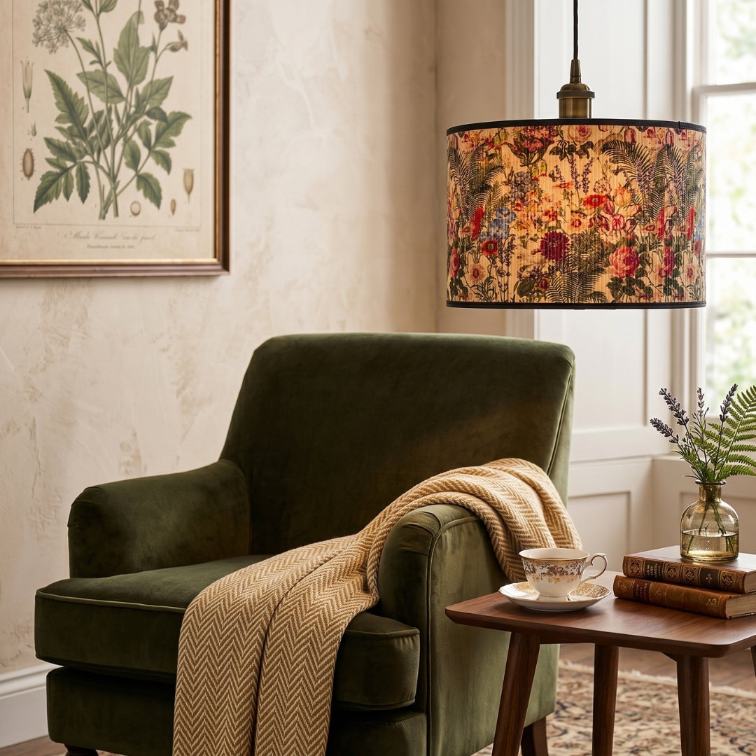 Our Nightingale lampshade is featured in our Saroma collection and is printed in-house and crafted in the UK. Designed and painted by our talented team of designers, this collection is influenced by the beauty of nature in Japan.