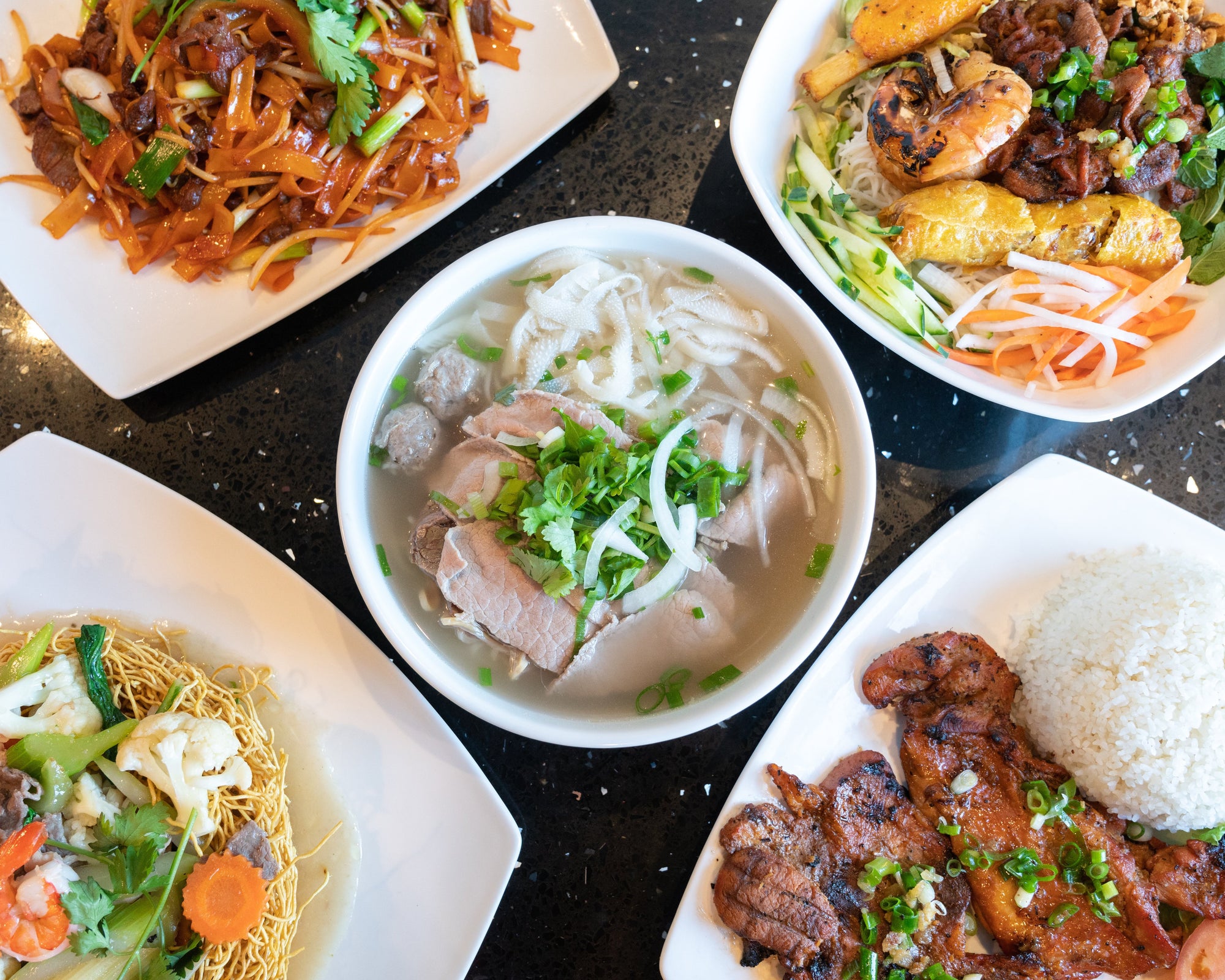 - Pho noodle soup with added seafood