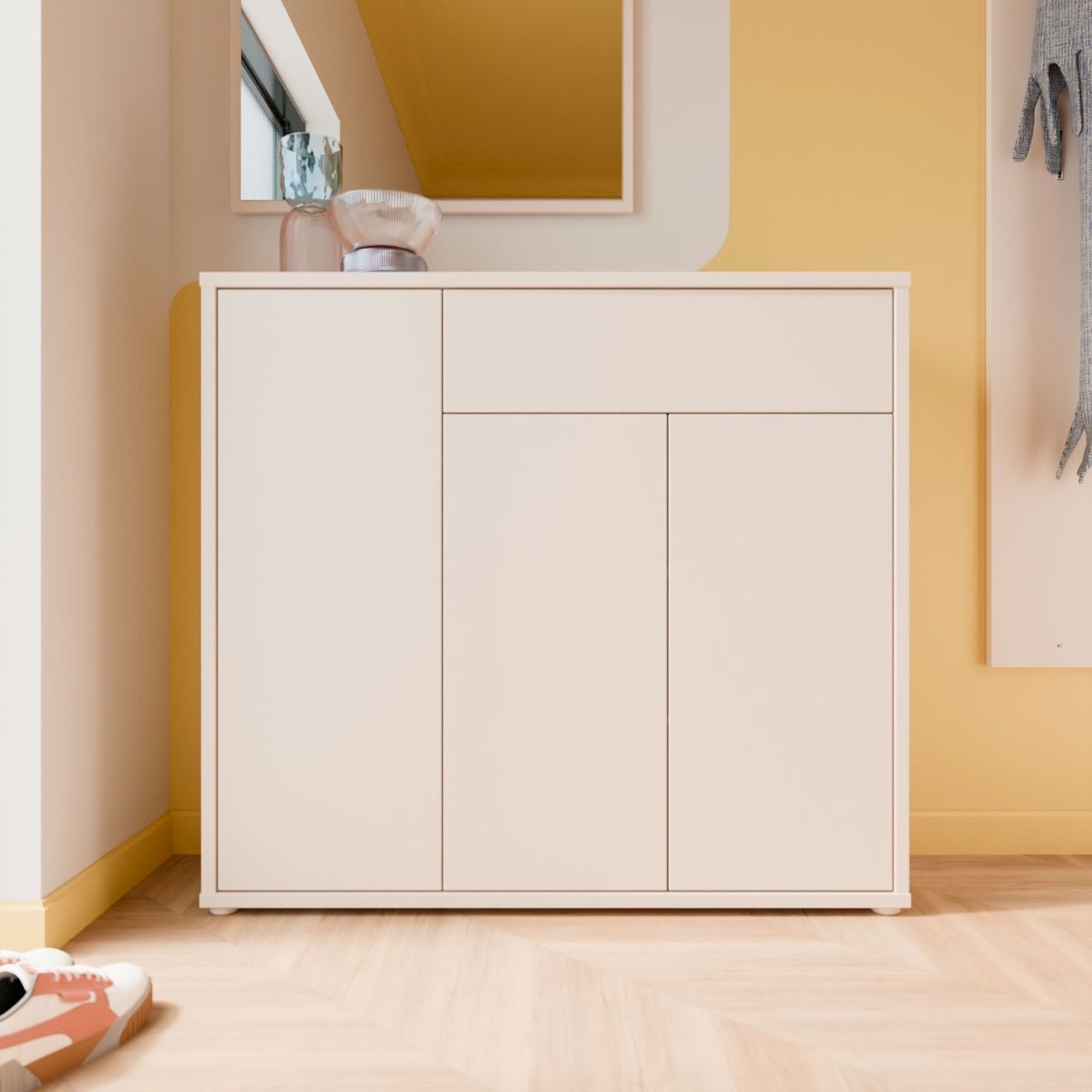 Alice Springs Shoe Cabinet – Sand Finish with 3 Doors & Drawer
